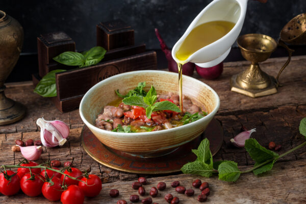 омлет, куриные шашлычки, картофель фри, чесночный соус, свежие овощи, тосты